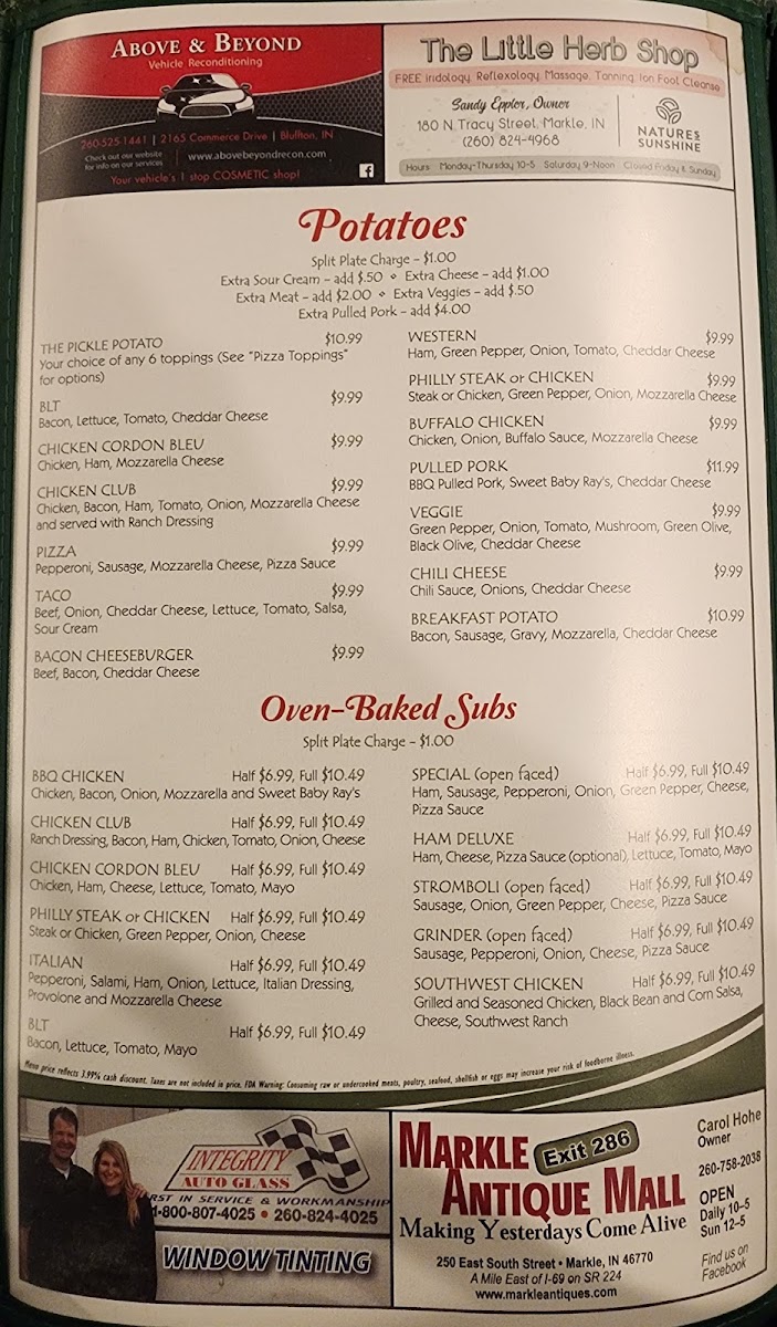 Oven-Baked Subs: The menu features several subs including BBQ Chicken, Chicken Club, Chicken Cordon Bleu, Philly Steak or Chicken, Italian, and Ham Deluxe. These subs are oven-baked and often served with sides, providing a heartier sandwich choice.