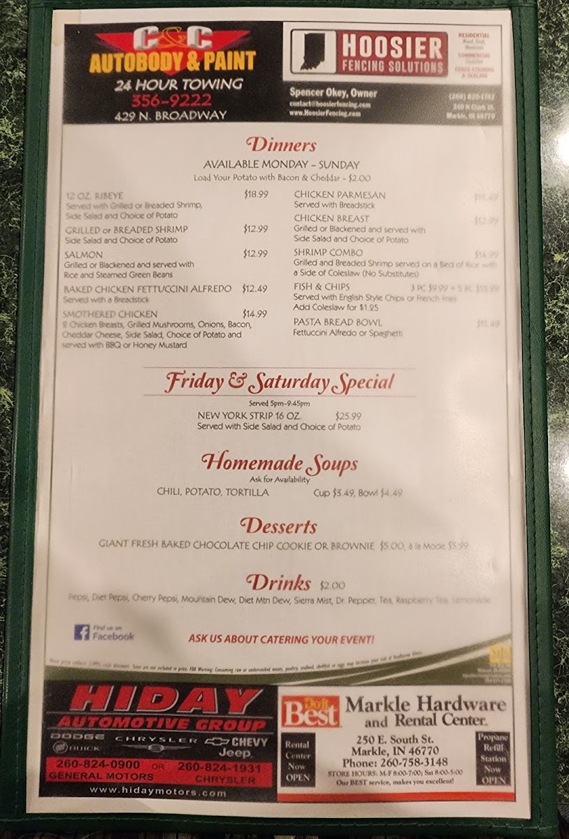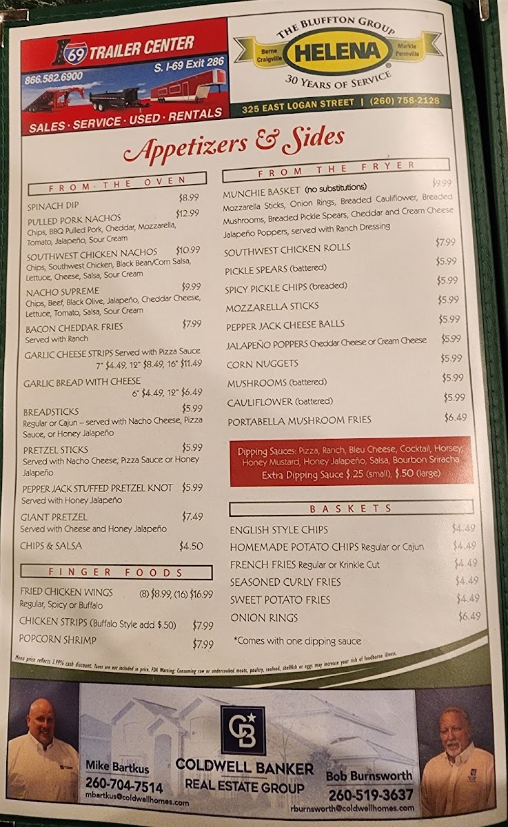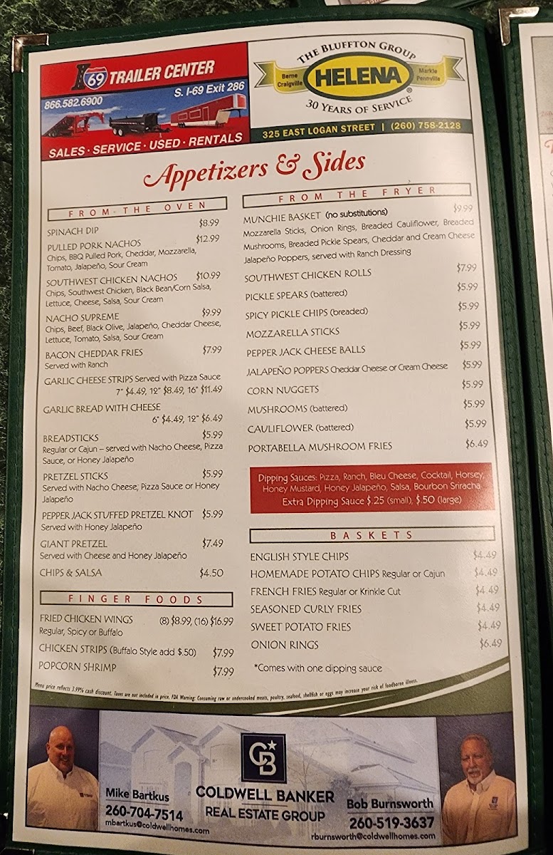 The menu is well-suited for casual, quick dining occasions, accommodating customers looking for a variety of meal options ranging from light bites to full meals. It supports both dine-in and takeout preferences, offering familiar bar and grill fare with a local touch.