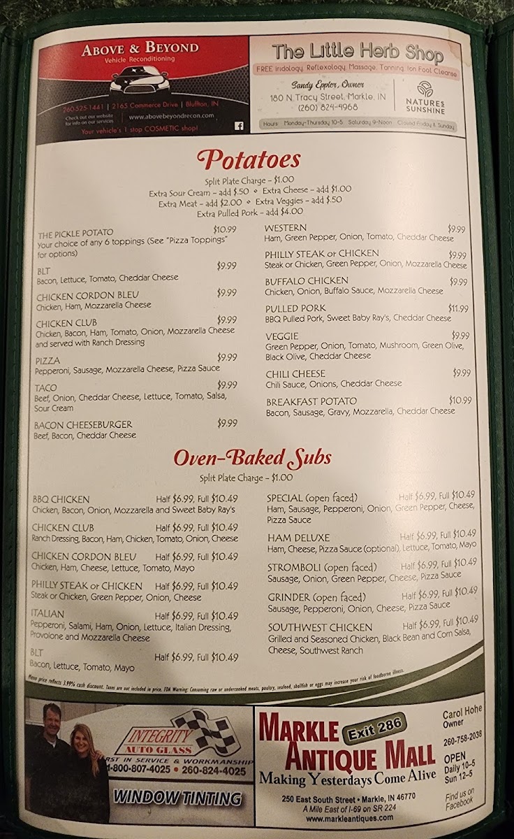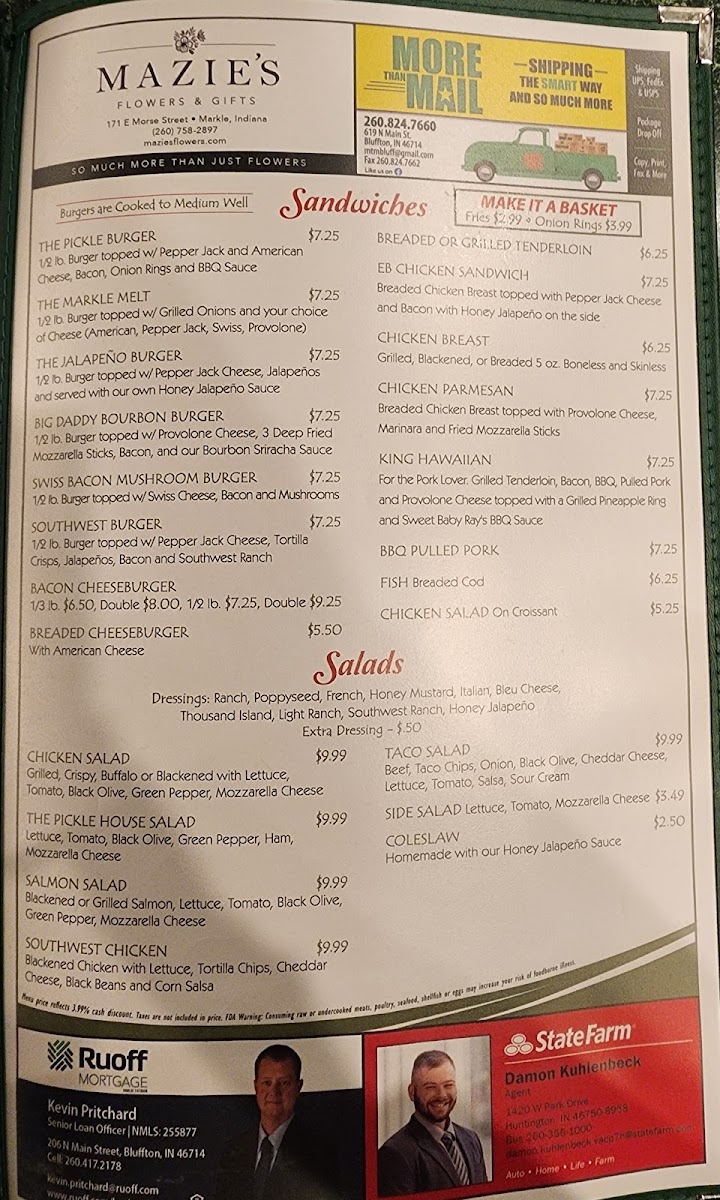 The Pickle offers a diverse menu featuring a variety of bar and grill selections suitable for casual dining. The menu is organized into several key categories, providing a range of options from sandwiches and subs to salads and specialty pizzas.